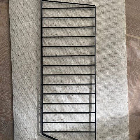 String väggavel formgiven av Nils Strinning. Väggavlarna är i vitt utförande och mäter cirka 75x30 cm. Säljs som 2-pack och är avsedda att användas som gavlar i ett String-hyllsystem, där hyllplan eller andra moduler kan hängas upp mellan gavlarna för förvaring eller exponering av föremål.