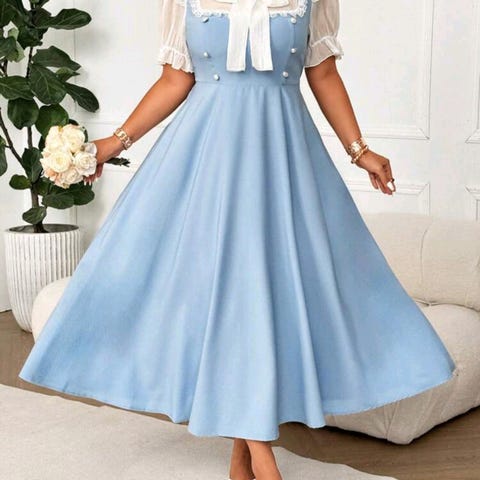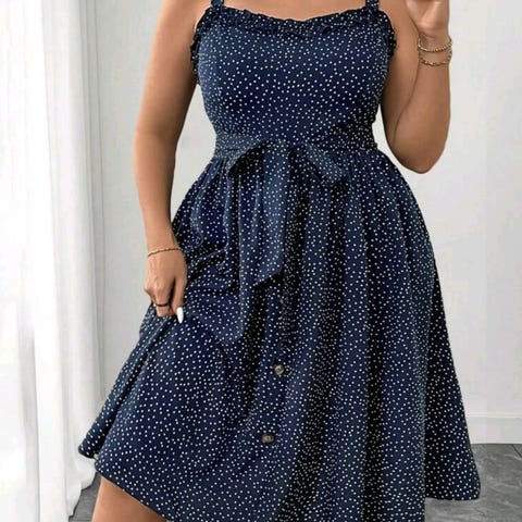 En söt, vit klänning med ett tryck av apelsiner och gröna blad. Klänningen har en fyrkantig halsringning och korta, volangärmar. Den har en smickrande passform med en markerad midja och en utsvängd kjol.