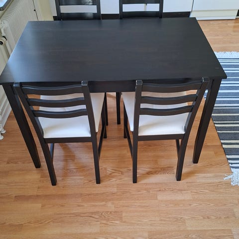 Säljer jätte fint vitt matbord I trä. Går att justera längd med utdragbar skiva.