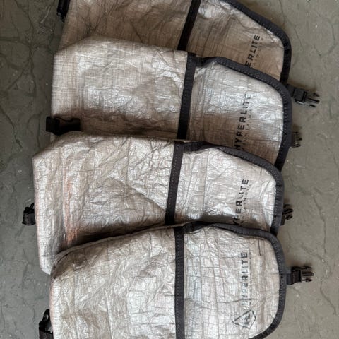 Jag kan skicka med 6st aluminiumtältpinnar (typ MSR groundhogs) om köparen behöver det.