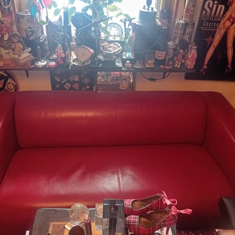 Röd Skinn Sittpuff/Förvaring