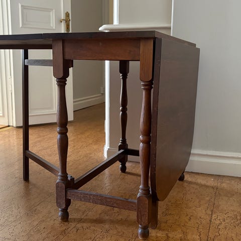 Gammalt slagbord, använt men i charmigt skick. Mått L 174cm B 90cm H 73cm. Djup med båda skivor nedfällda 47cm.