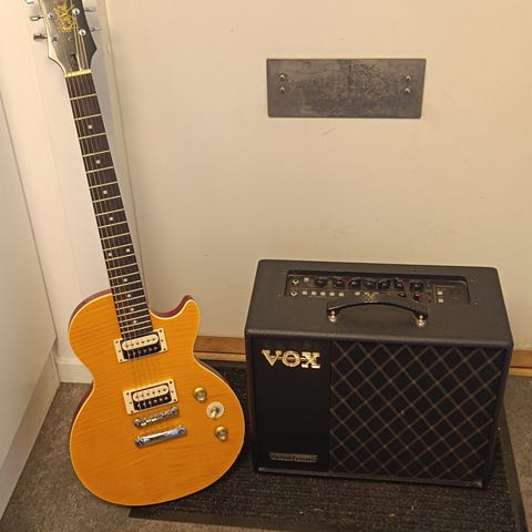 En välbyggd och robust gitarr som har tjänat mig väl, men säljs då jag mest spelar Flying-V nu för tiden. Halsen är någonstans mittemellan 50s & 60s”, dvs. lagom tjock. Mickarna är Burstbucker 61T och 61R. Den är tillverkad 2019 och väger ca 3.9 kg.