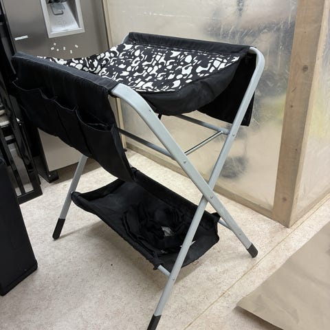 Ihopfällbar Stokke Flexi Bath stativ / ställning. För att lättare hålla och bada bebis i bekväm arbetshöjd. Fungerar som den ska.