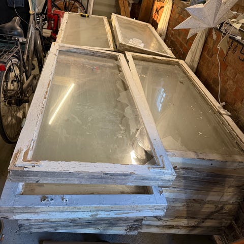Runt fast fönster med energiglas och vit karm. Yttermått är markerat till cirka 585 mm i diameter. Fönstret är försett med glas där ena sidan är märkt som energiglas, vilket innebär bättre isolerande egenskaper jämfört med vanligt glas. Passar exempelvis för montering i vägg eller dörr där ett runt fönster önskas och där energiglas är lämpligt av isoleringsskäl.
