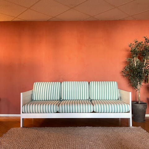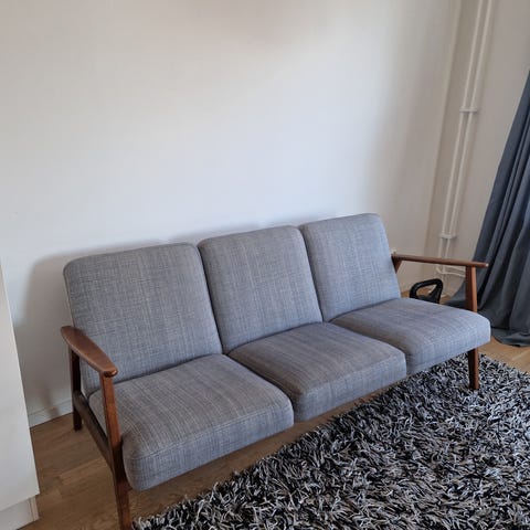 Fin 50-talssoffa med tillhörande fåtölj.