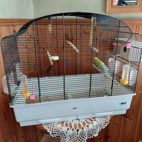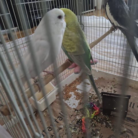 Jag har voxna blackface blackwing dem ett år gammal jag har gröna och blå färg jag har fågelbur om man vill .