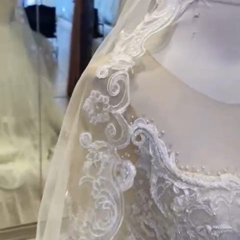 Kuftan klänning i vit guld kanvas för dam i storlek S. Plagget har dekorativa guldfärgade broderier och pärldetaljer framtill samt ett matchande bälte i midjan. Lång, flödande modell med öppet ytterlager och markerad midja. Passar till exempel för fest eller högtidliga tillfällen.