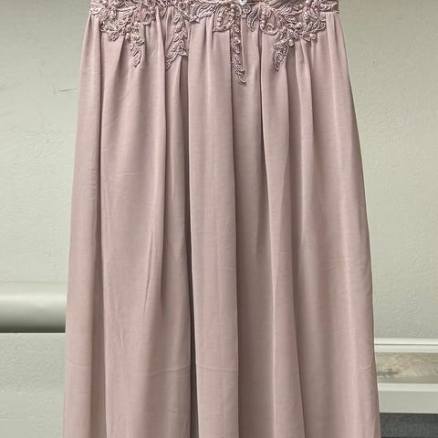 festklänning för dam i storlek 36. Klänningen är lila och sydd i tyll. Överdelen har figurnära liv med markerad byst och dekorativa detaljer. Nederdelen består av flera lager tyll som ger volym och ett längre, flödande fall. Passar till festliga tillfällen som bröllop, bal eller andra högtider.