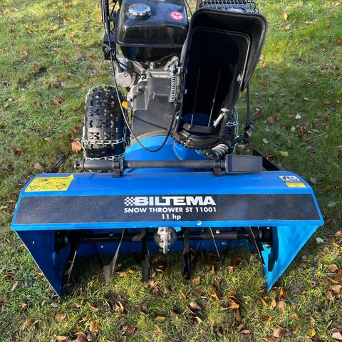 Bonnet snöslunga i blå färg. Maskinen är bensindriven och har tvåstegssystem med inmatningsskruv och utkastare framtill. Reglage och handtag sitter bak för styrning av hastighet, drivning och utkastarriktning. Passar för snöröjning av uppfarter, gångar och andra ytor runt bostad eller fastighet.
