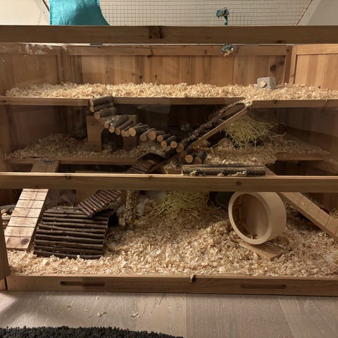 Hej! Nu säljer jag en hamster bur med massor av nya tillbehör som redan är tvättade och redo att användas man får samt med sand för hamstern två vattenflaskor, guldhamster och en transportbur som man kan ha för till exempel veterinär besök. Buren och tillbehören passar perfekt för dvärghamstrar och guldhamstrar tillbehören och husen är tillräckligt stora för guldhamstrar också hjulet är 28cm stort. Man får med all spån som ligger i buren också men vi ligger spånet i påsar så det blir enklare att bära buren det här är allt du behöver för att ha en hamster ett helt komplett sett😁!