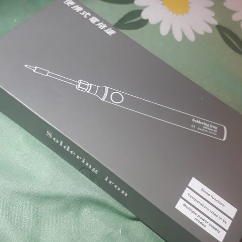 På föroacknjngen står Soldering iron USB Battery 8W mm Sleep function, Temperature rises in 5s, Multiple power supply modes. Lödning snabbt och smidigt med tempersturinställnjng höjning på 5 s