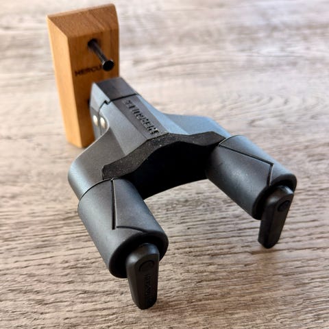 Tre Fender gitarrställ i trä. Hopfällbart stativ för elgitarr, med stödytor i gummi mot instrumentet.