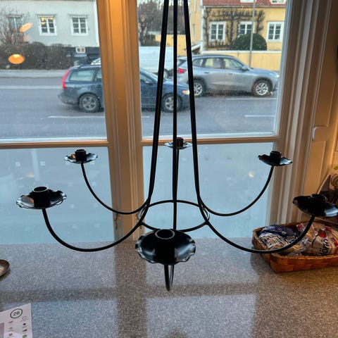 För stearinljus. Hänghöjd 116cm med möjlighet att korta. Bredd 34 cm.