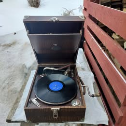 Gammal vevgrammofon - Polyphone som det går att spela på. Säljes i befintligt skick med 8 st stenkakor och stift (i plåtask).