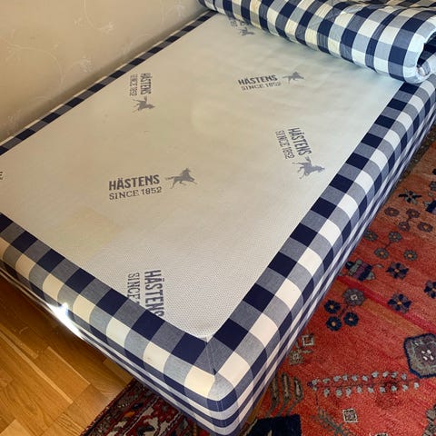 Hästens Sheraton säng blåvit rutigt tyg biligare snabb affär
