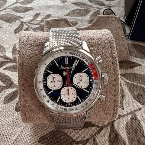 En vacker 100-årsjubileumsklocka inspirerad av den klassiska stilen från Zeppelin-eran. En tidlös design som kombinerar vintageelegans med precis kronograffunktion. 42mm