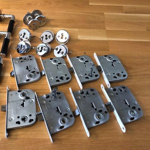 Låshus för innerdörrar, 6st, tillsammans för 300kr, styckvis för 60kr, finns i Nacka, kan skickas mot fraktkostnaden.
