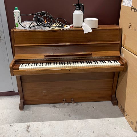 Eventuell köpare hämtar pianot på plats.