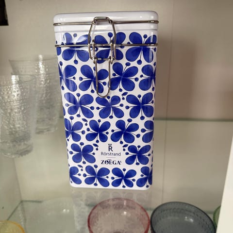 Säljer en fin kaffeburk från Rörstrand i samarbete med Zoégas. Burken har ett klassiskt blått blommönster som passar perfekt i ett kök med skandinavisk eller retro stil.