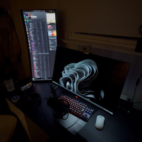 En väldigt bra gaming-skärm. Asus ROG Strix med OLED-skärm, 2K 360Hz och stöd för 4K 120Hz. Den har ett års försäkring och två års vanlig garanti. Jag köpte den tillsammans med min dator.