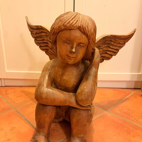 Vacker stor ängel i guldfärg snygg att pryda rummet med