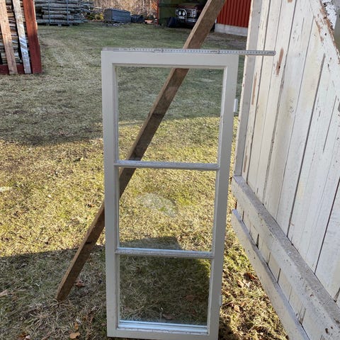 9 st Vita flagg fönster dubbel bågar med spröjsat glas. Mått cirka 50 cm på bredden och 153cm på höjden enligt måttband på bilderna. Fönstret är av trä med glasrutor och har gångjärn och handtag på sidan. Passar exempelvis som ytter- eller innerfönster i liknande karmöppning eller som återbruksdetalj i bygg- eller inredningsprojekt. 150kr st. Skicket är ganska fina