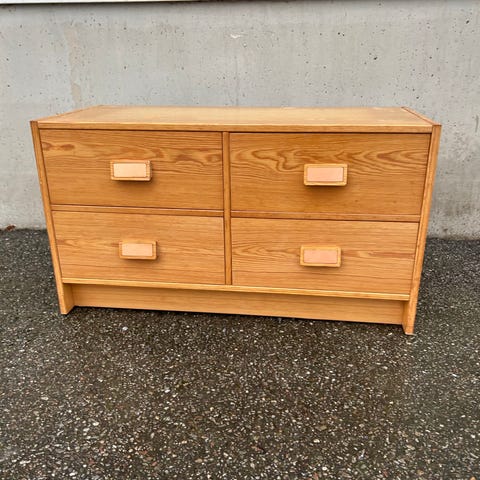 Två lådor och handtag i metall.
