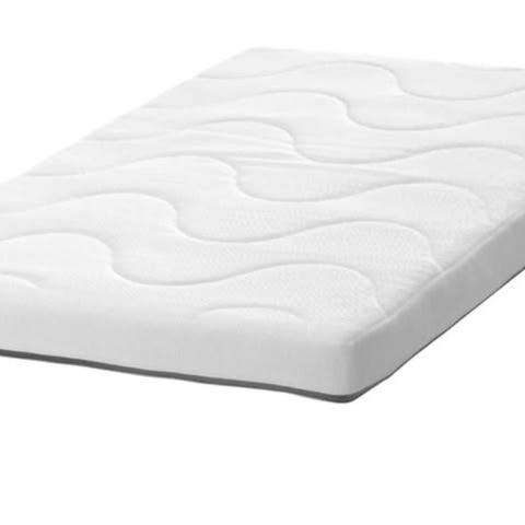Spjälsäng Kaxholmen. Madrassmått 55x115. Höjd på sängen 85 cm. Madrassen är ny och oanvänd, 7 cm tjock. Spjälskydd ingår. Tre olika nivåer på sängbottnen. Sängen är i fint skick men det finns två mindre sprickor på ena gaveln, se tre bilder. (Jag såg dem faktiskt inte själv trots att sängen stått uppställd hos oss det senaste året, men den sidan kan vändas bort eller så kan sprickorna målas över om man vill).