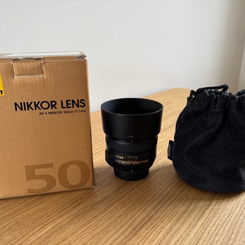 Nikon AF Nikkor 50mm f/1.8D objektiv för Nikon-kameror. Fast brännvidd på 50 mm och största bländare f/1,8. Mekanisk bländarring och fokusring med avståndsmarkeringar. Metallfattning för montering på kamerahus med Nikon F-fattning.