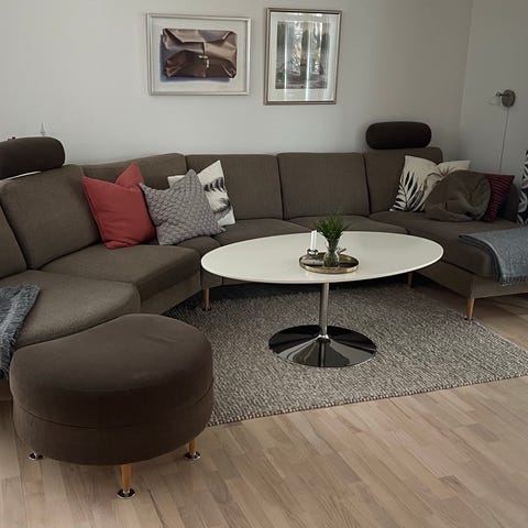 Soffbord med vit skiva och svarta ben.