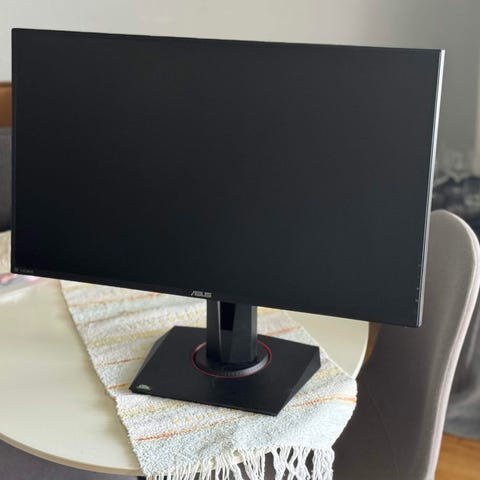 Asus TUF Gaming bildskärm med 27 tum skärmstorlek. Skärmen har IPS-panel, upp till 165 Hz uppdateringsfrekvens och 1 ms responstid enligt förpackningen. Stöd för AMD FreeSync och flera bildlägen är angivet. Anslutning via HDMI. Lämplig för användning med stationär dator eller spelkonsol där en större skärm önskas.
