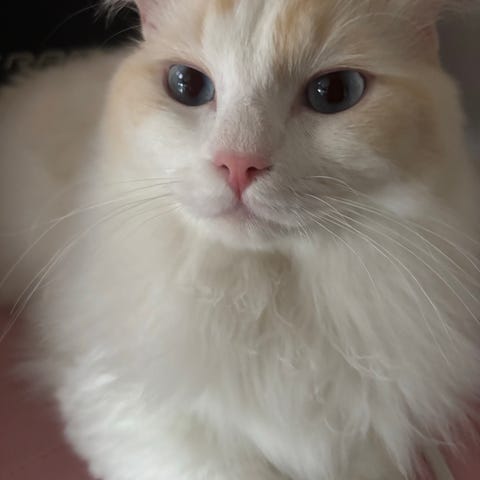 En hankattunge finns kvar från en kull på fyra (övriga tingade). Blandning av Ragdoll och Maine Coon, där båda föräldrarna är samma mix.