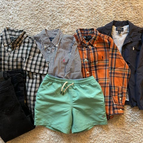 Polo Ralph Lauren badshorts för pojke i storlek 7 motsvarande 116/122. Shortsen är blå och tillverkade i polyester. Modellen har resårmidja med dragsko, sidfickor samt bakficka med knapp. Liten broderad logotyp framtill vid benet. Passar som badshorts eller strandshorts för barn.