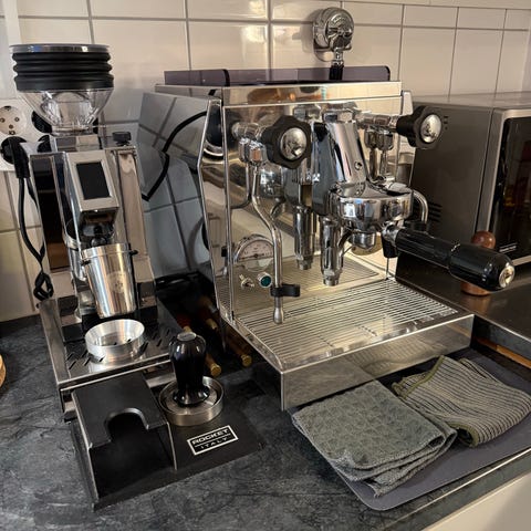 Espressomaskinen är i nyskick och fungerar perfekt.