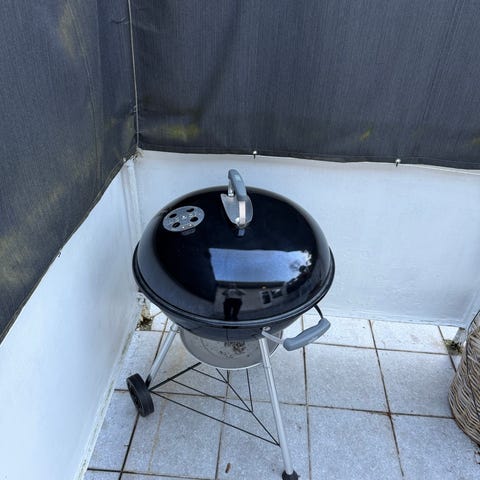 Weber klotgrill kolgrill i svart utförande. Klassisk rund modell med lock och ventilationshål i locket. Utrustad med grillgaller, askuppsamlare under grillen samt benställning med två hjul för enkel förflyttning. Handtag på lock och sidor för hantering av grillen. Passar för grillning med kol eller briketter på altan eller i trädgård.