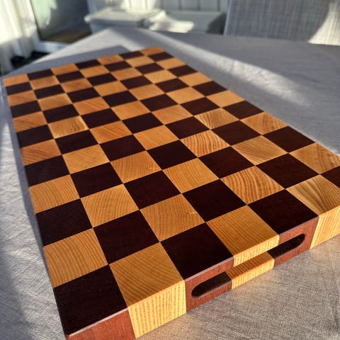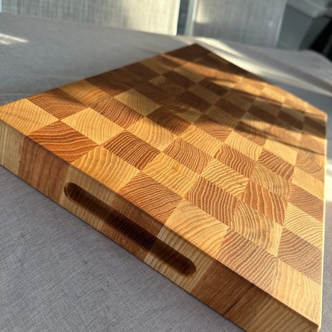 Serveringsbräda i trä med längd på cirka 1,2 meter. Brädan har ett naturligt träutseende med brända kanter och ett handtag med upphängningshål i ena änden. Passar för servering av exempelvis bröd, charkuterier eller ost, samt som dekorativt inslag i köket.