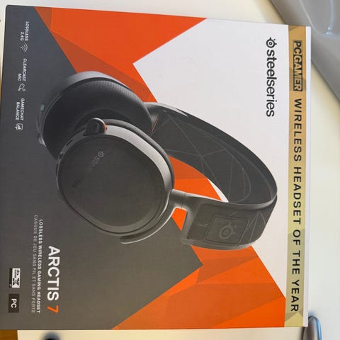 Steelseries Arctis Pro Wireless gamingheadset i svart färg. Trådlöst headset med tillhörande basstation/sändare och utbytbara batterier enligt bilder. I förpackningen finns även kablar för anslutning samt manual. Headsetet är avsett för spel och allmän ljudanvändning med trådlös uppkoppling via basstationen. Extra deadset band med följer. Den högra drivern är lite konstig brukar inte va några problem.
