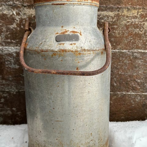 En stor och fin traditionell mjölkkanna, stor, med allmoge målning / mörkbrun basfärg/blommönster still ,metall , passar perfekt för dekorativ, både utomhus och inomhus i vardagsrum, Hall, köket med mera.pris 700kr bara seriösa köpare tack.