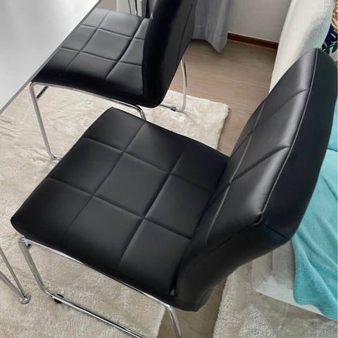 Bordet är i gott skick och stabilt. Stolarna är hela och fina med skinn sits.