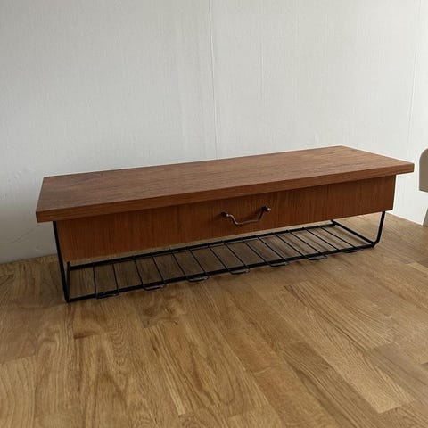 Retro hylla med lådor. Verkar vara en gammal telefonhylla.