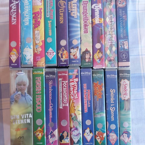 Denna ikeakasse med massa vhser behöver hitta nytt hem. Inspelade med naturprogram, gamla barnprogram och barnfilmer samt klassiska filmer som Star Wars mm.
