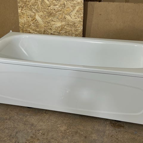 Fristående badkar med propp, mått: 150 cm långt 70 cm brett och 50 cm högt.