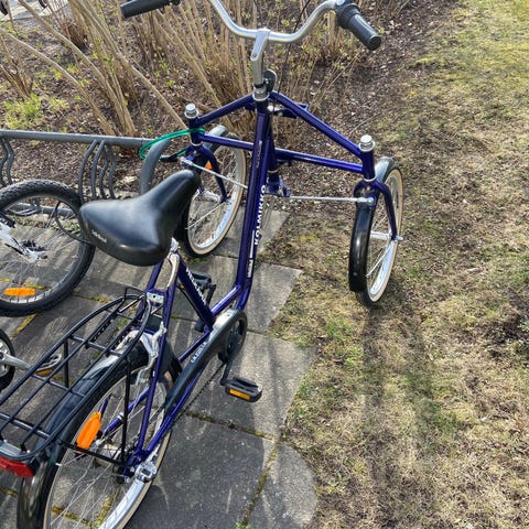 Cykeln för dig som av någon anledning inte har balansen eller vill känna dig säker när du stannar. Härligt sätt att ta sig fram med stor nätkorg för varor och annat du behöver frakta. Den är treväxlad och i mycket gott skick då den alltid förvarats i garage när den inte används.