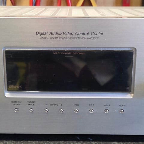 Enheten har AM/FM-radio, tonkontroll och flera ingångar på baksidan för anslutning av externa ljudkällor. Högtalaranslutningar finns för flera kanaler med skruvterminaler. Fjärrkontroll och antenn medföljer. Enheten är avsedd för hemmabio- och stereobruk, med anslutning av flera externa källor och högtalarsystem för flerkanalsljud i hemmiljö.