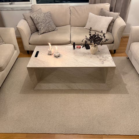 Mio matta i brun nyans. Rektangulär modell som passar bra under soffgrupp eller soffbord i vardagsrum.