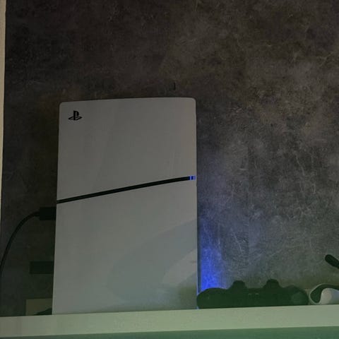 Playstation 5 Slim 1TB Disc Edition med Star Wars Outlaws samt trådlöst gaming headset Logitech G435 som kan kopplas till konsol och mobil samtidigt.