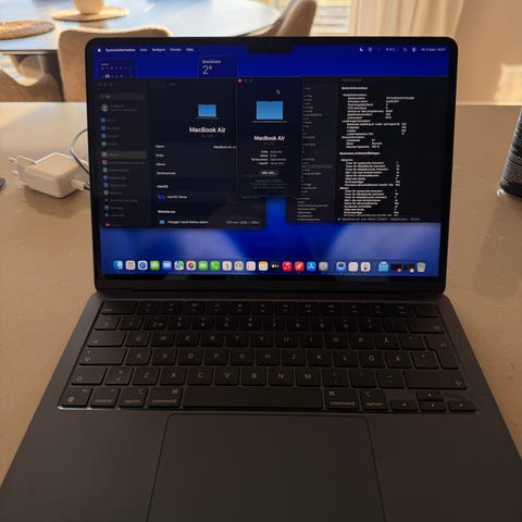 Apple MacBook Air M3. 16GB RAM 512GM. 15 tums. Mycket bra skicka, inga repo eller liknande. Laddare och original förpackning finns.