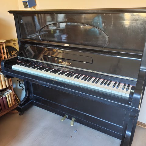 Äkdre, svart piano från J.G. Malmsjö, Göteborg. Fin, stor klang. All mekanik i gott spelbart skick.