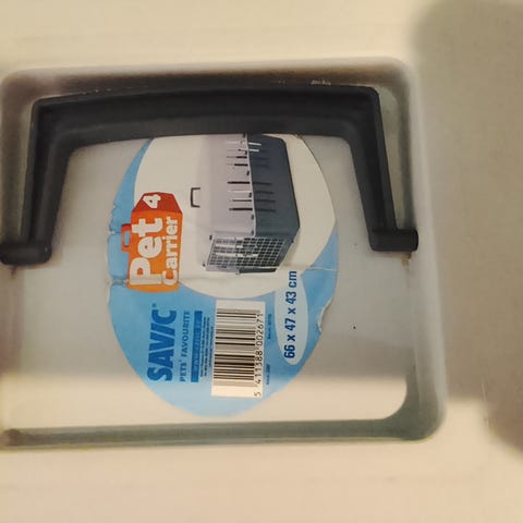 Transportburen är i gott skick både utanpå och inuti med några ytliga skråmor. Inga tecken av slitage i dörren eller fästen som håller ihop buren. Buren har fyra hjul varav ett är trasigt. Hjulen går att ta bort helt. Det finns tillhörande metallpinnar som man skruvar fast för att säkra att buren hålls ihop. Den beige och gråa delen av buren är två separata delar som hålls ihop med fästen och ”metallpinnarna”. Buren är 100 cm lång, 70 cm bred och 80 cm hög utan hjul. Hämtas i Kista.